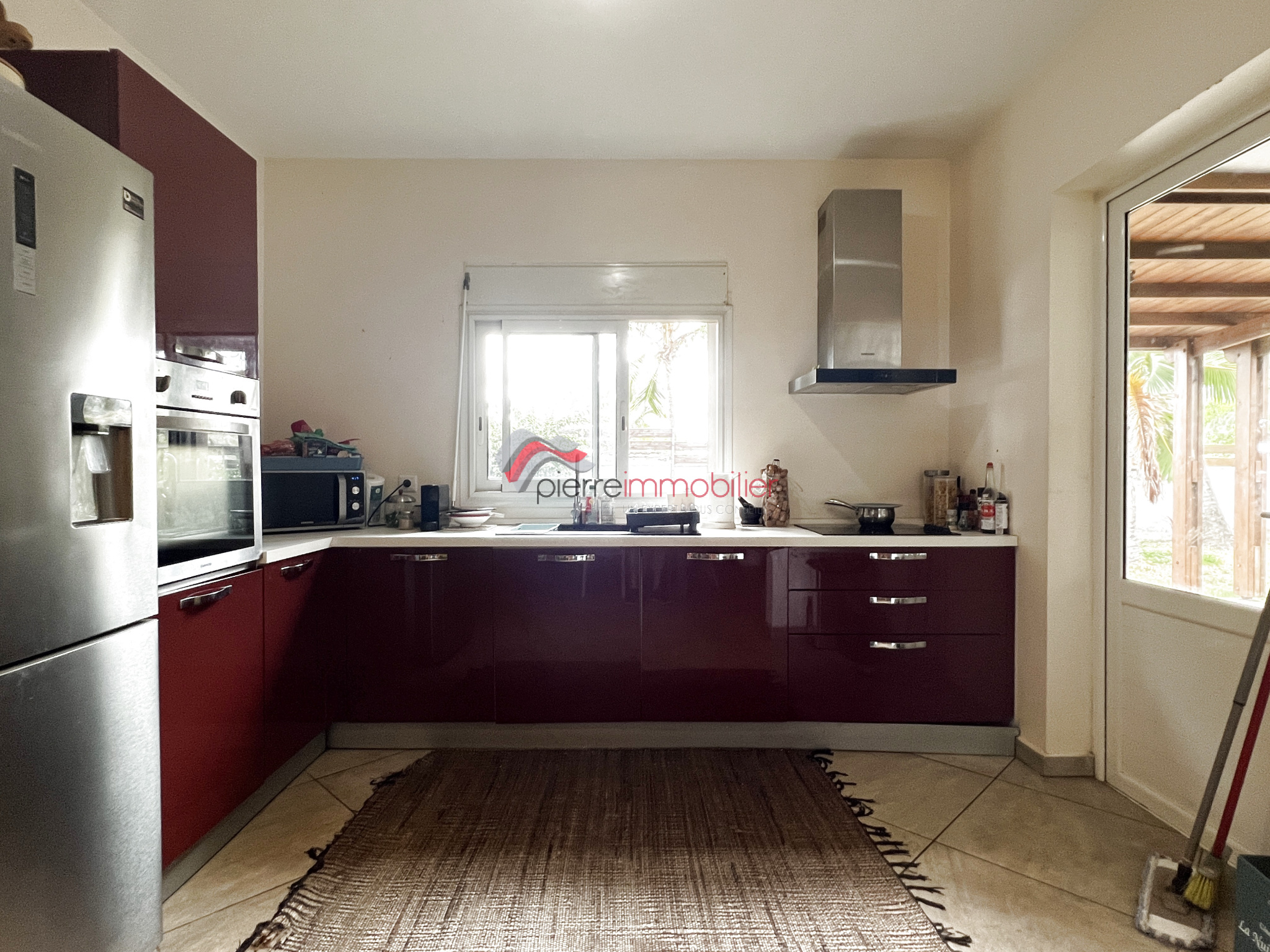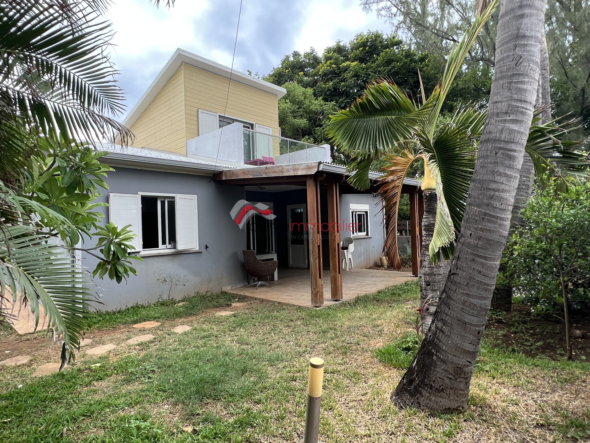 À l'extérieur, vous apprécierez une varangue donnant sur un jardin gazonné et entièrement clôturé.