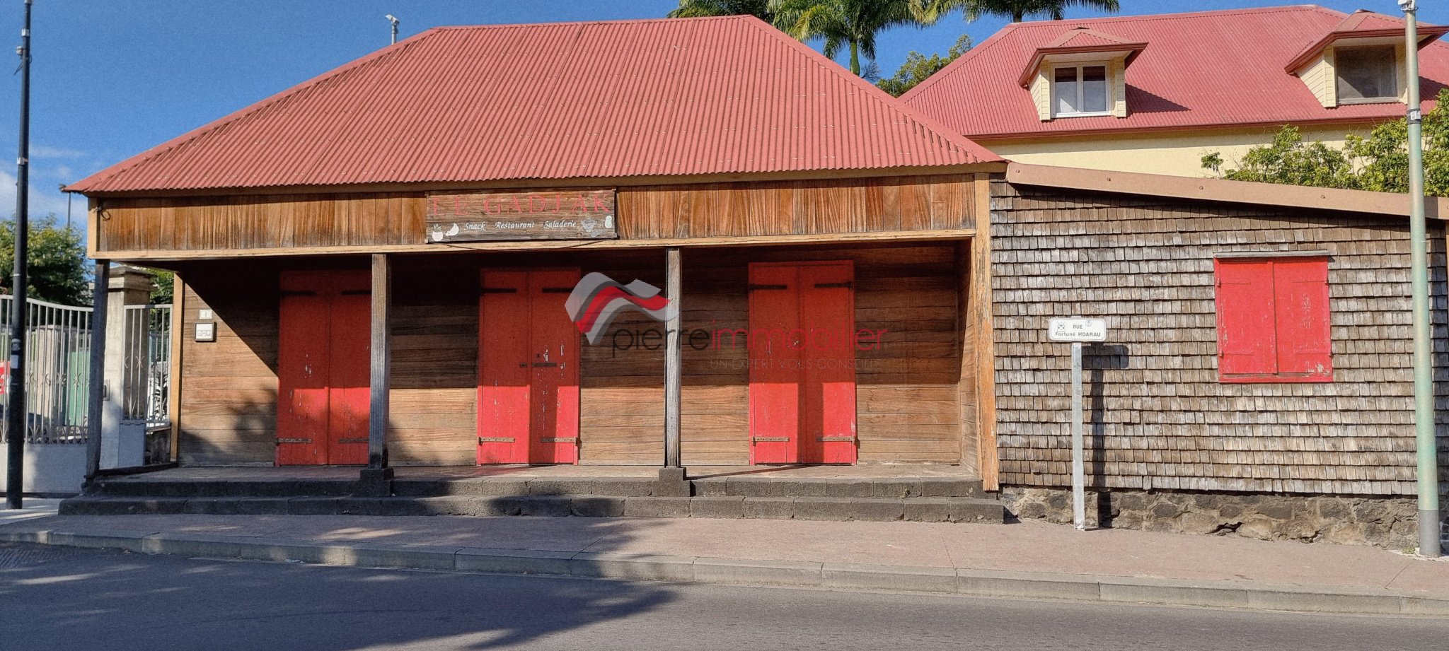 Installé dans une case créole traditionnelle entièrement en bardeaux bois, ce local développe une surface d’environ 81 m² et dispose d’un sanitaire.